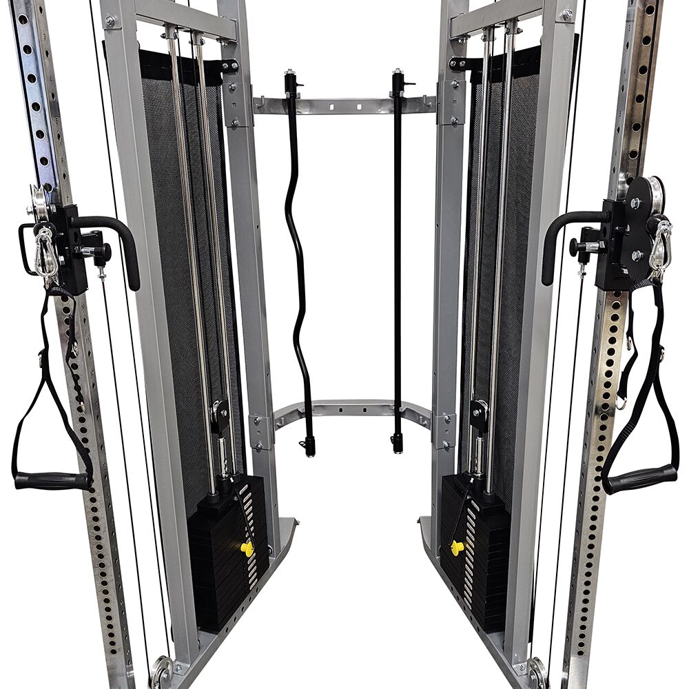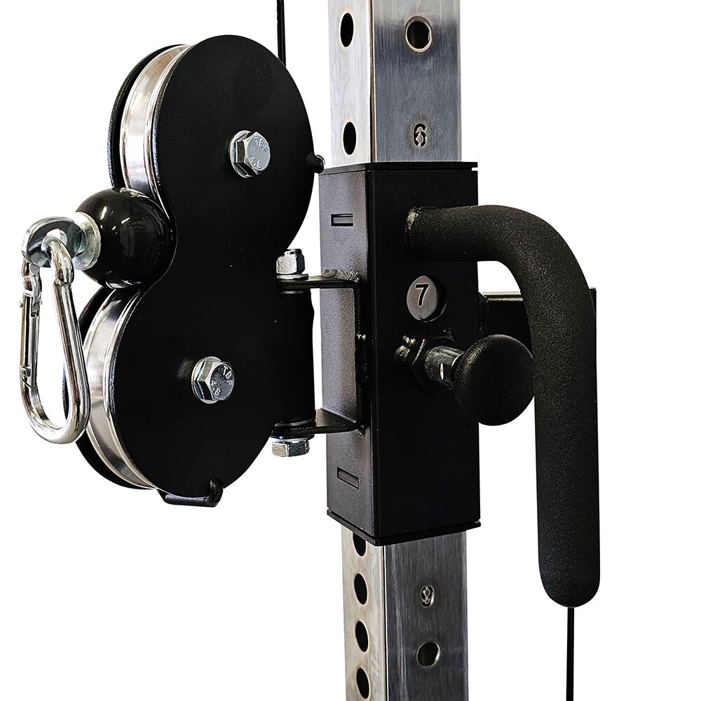 DAP (Dual Adjustable Pulley) cablecross trekkapparat med 2x90kg vektmagasin. Utvekslingsratio på kabler er 2:1. Høydenivå på håndtakene stilles raskt og enkelt inn med et håndgrep og alle nivåene er nummerert. Håndtak til chins/hang ups samt feste til strikk er integrert øverst i rammen.