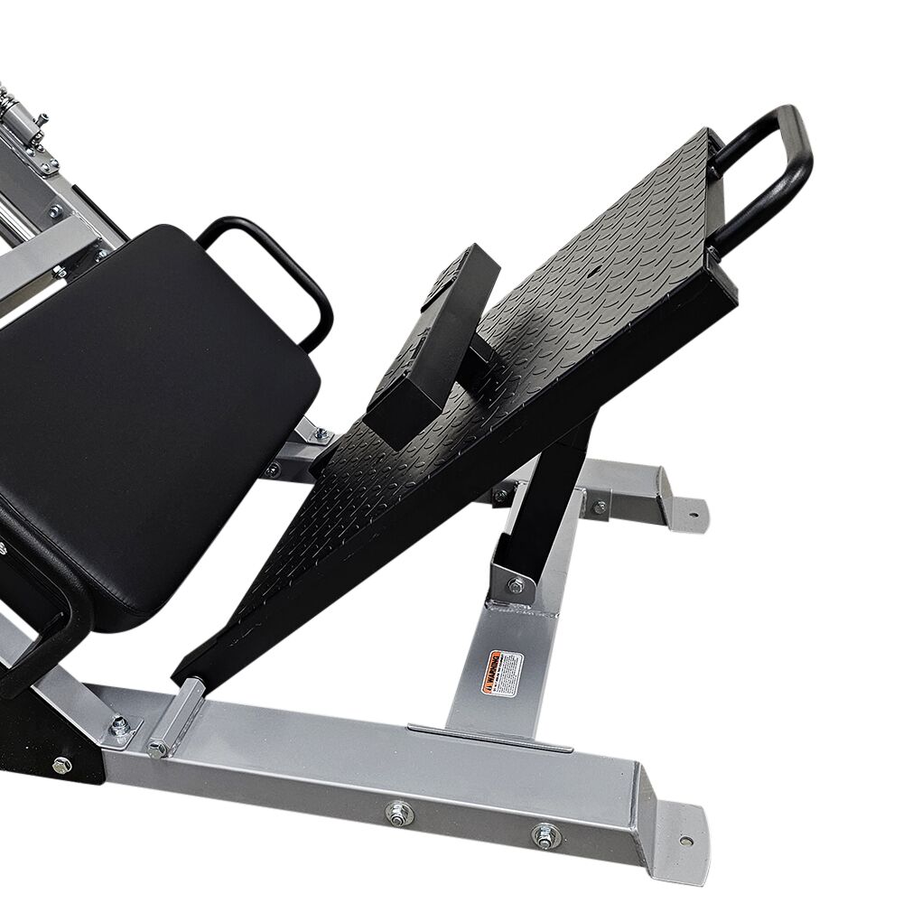 Dette dual benpress apparatet gir deg mulighet til å trene både sittende benpress og stående benpress i samme maskin.