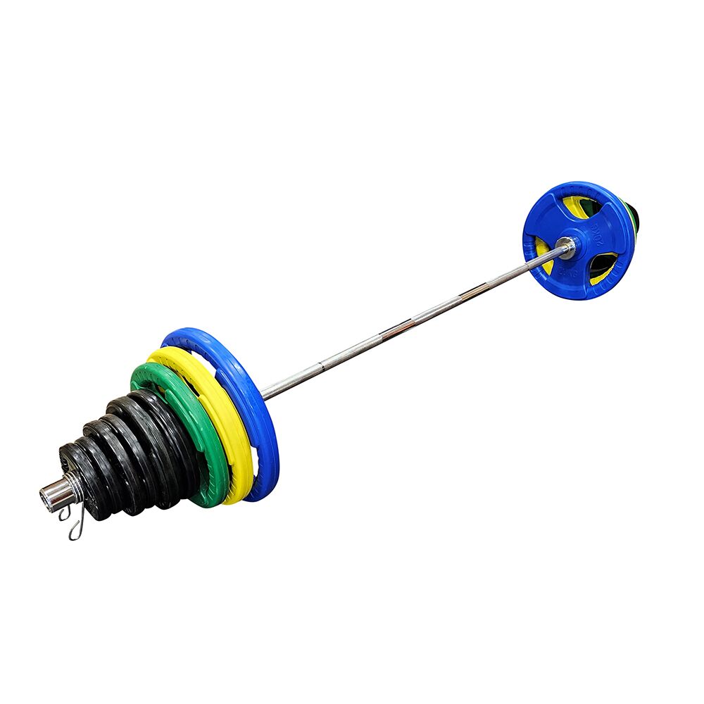Består av: gummierte vektskiver med håndtak. 50mm hull. Fordelt på: 2x20kg, 2x15kg, 2x10kg, 4x5kg, 4×2,5kg, 4×1,25kg + 1 x olympisk vektstang 20kg med låser