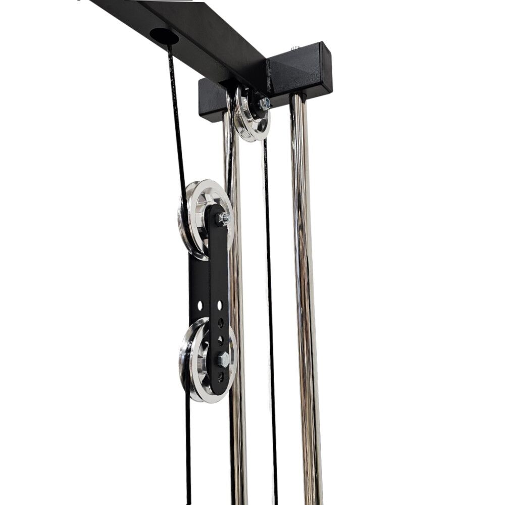 Plasseffektiv og rimelig styrkepakke. G440 er et multiapparat smithmaskin som dekker de fleste behov: plate loaded nedtrekk + sittende roing, J hooks og sikringsarmer for knebøy/benkpress med fristang, samt integrert smithstang. G440 kommer også med 4 stk oppbevaringshylser for lagring av vektskiver integrert i apparatet. Alle trinser er i aluminium. Denne pakken består av følgende: