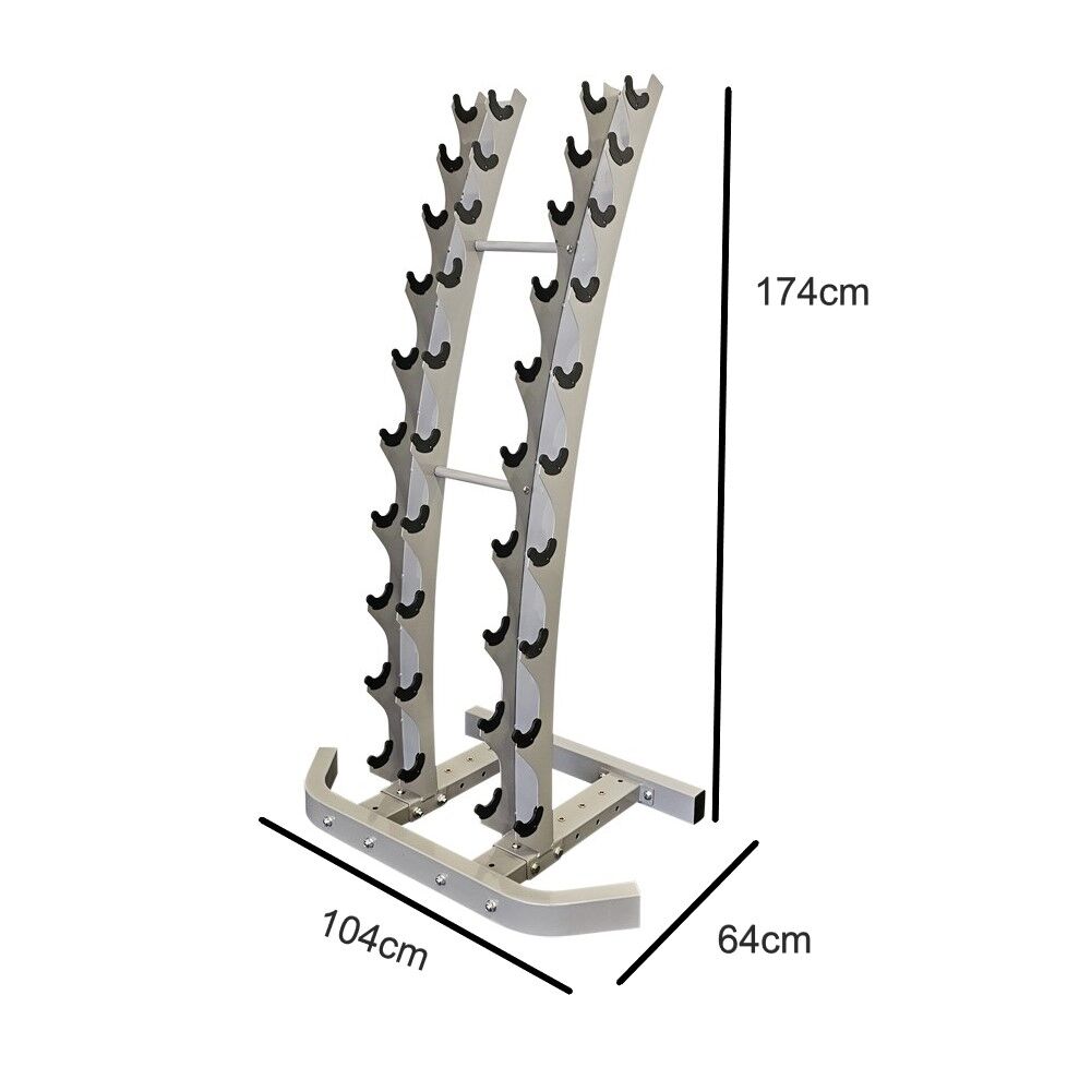 9 par hex hantler inkludert vertikalt oppbevaringsstativ: 2, 4, 6, 8, 10, 12.5, 15, 17.5 og 20kg.