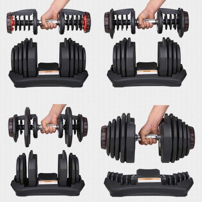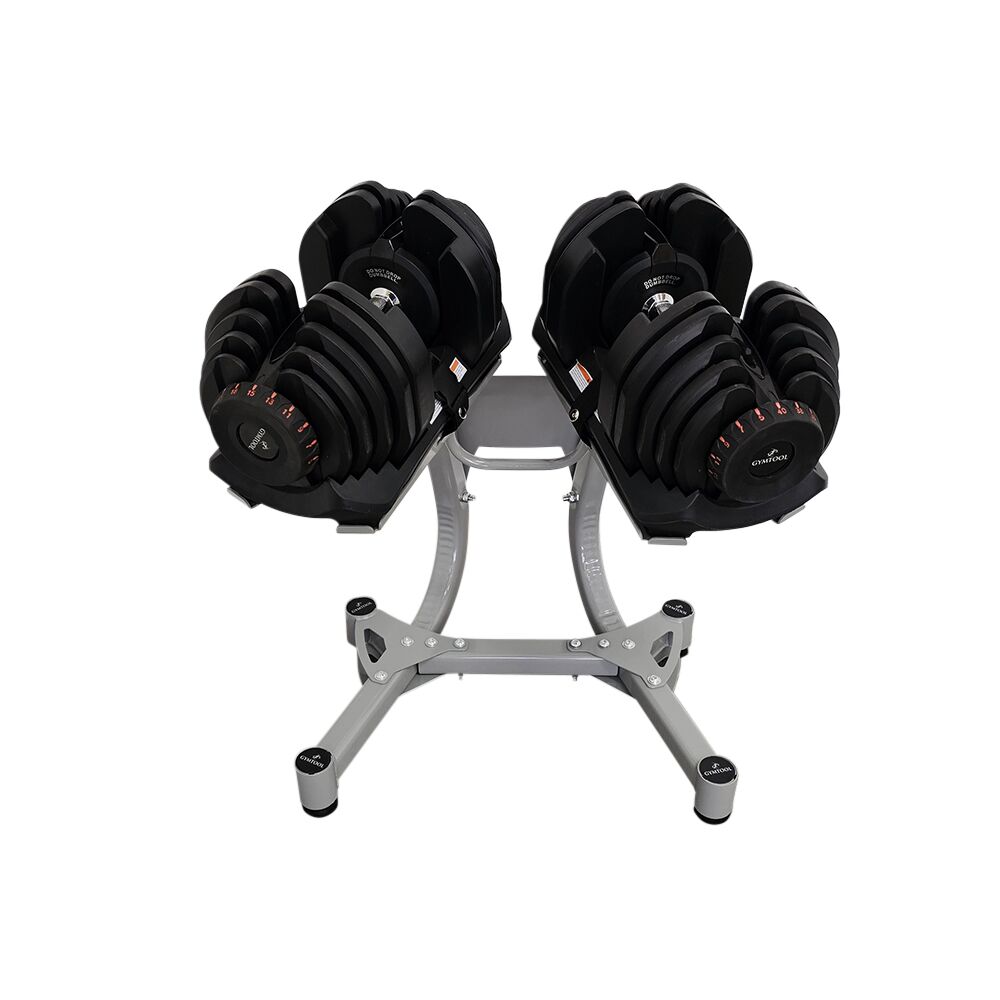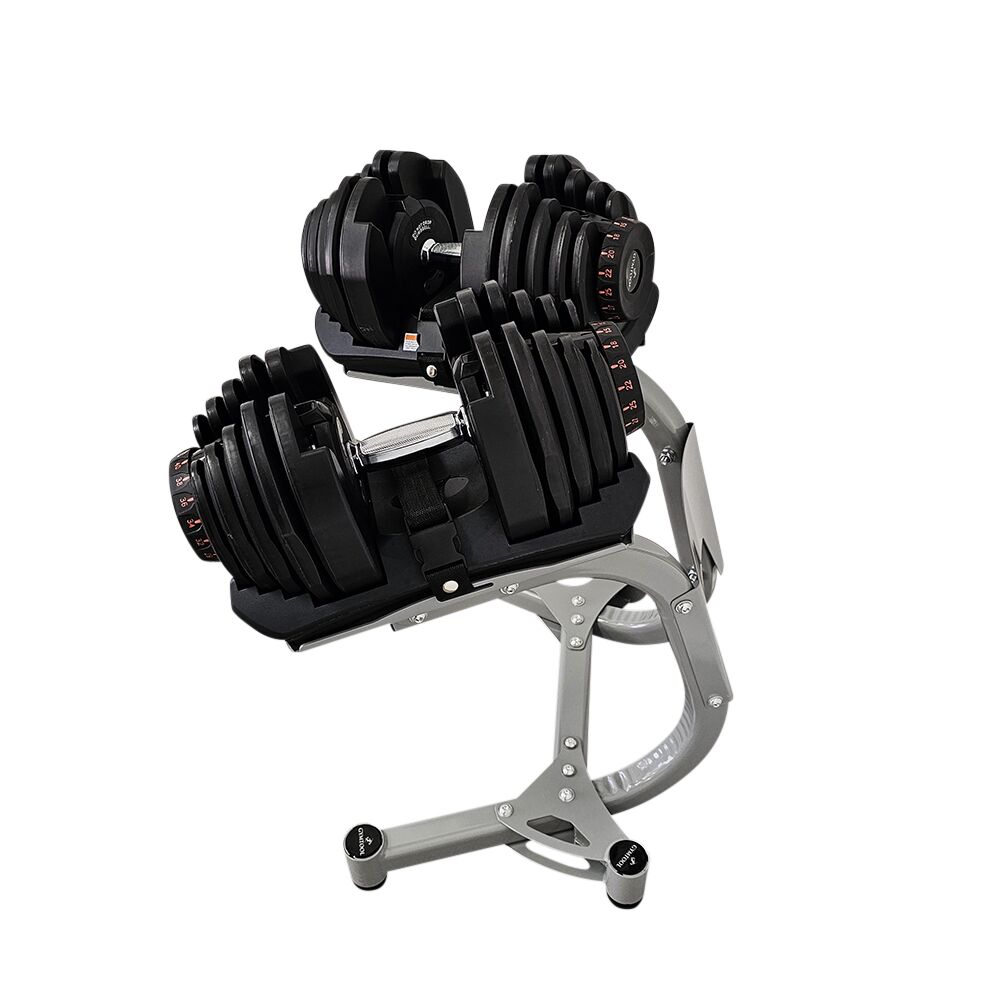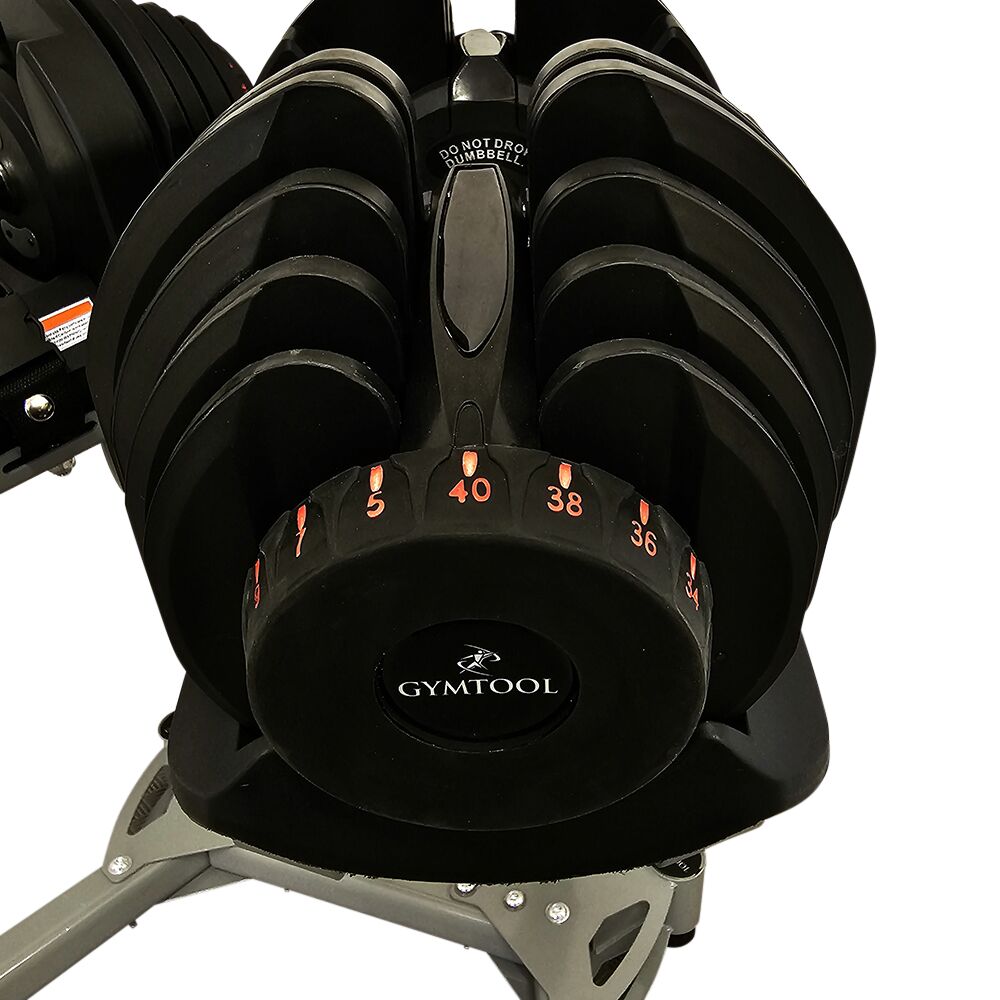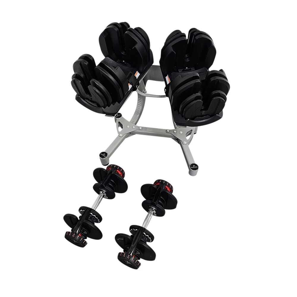 Justerbare hantler som kan stilles inn fra 5kg til 40kg, i 17 intervaller. Leveres som komplett sett med 2 stk fleksimanualer + stativ. Stativet har hjul for enkel forflytning. Dette er en meget rimelig og plassbesparende løsning for de som ikke har behov eller plass til et helt sett med hantler. NB: disse hantlene skal ikke droppes i gulvet
