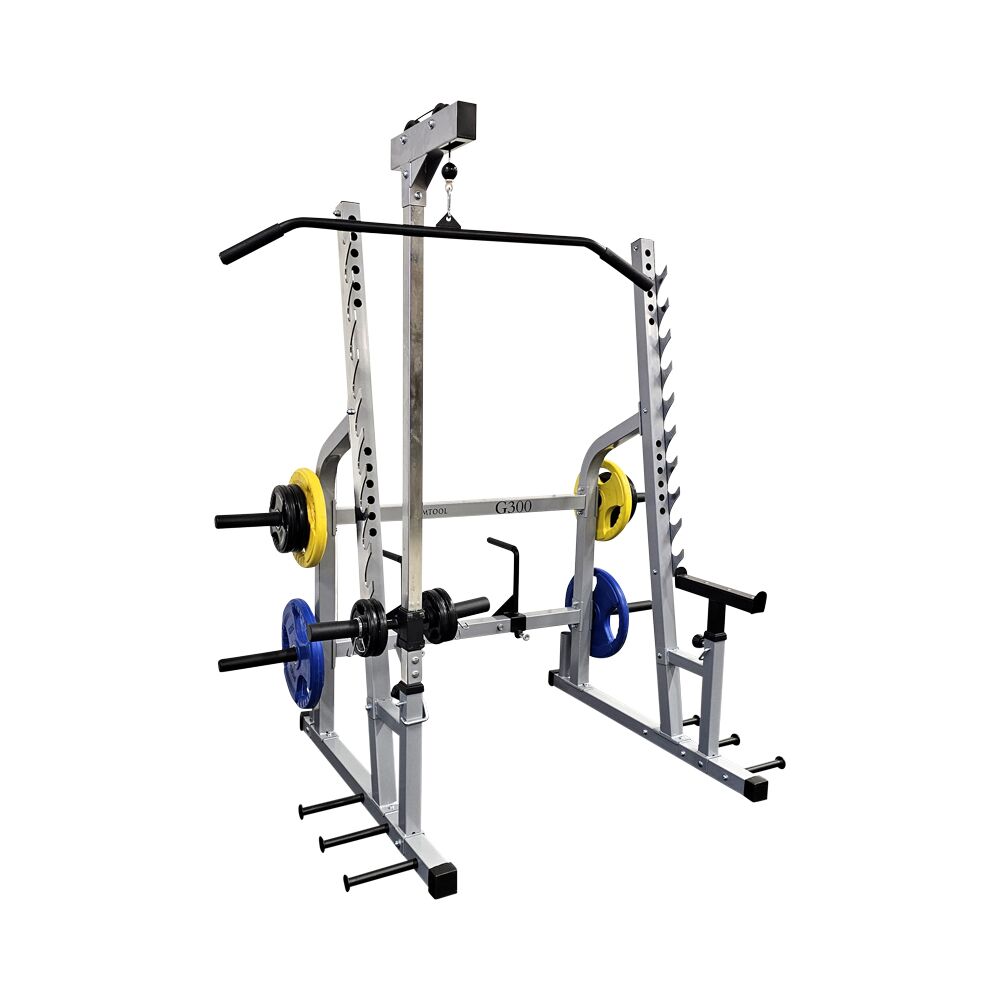Stasjon for bl.a nedtrekk og tricepspress til G300 knebøystativ. Modulen har 4 justeringsnivåer som gir følgende valgmuligheter på høyden: 198cm, 202cm, 206cm og 210cm.