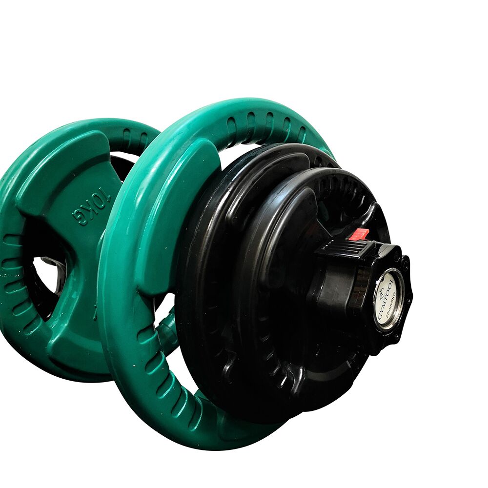 Manualsett hvor en selv velger ønsket vekt per hantel: 5kg, 10kg, 15kg, 20kg, 25kg, 30kg, 35kg og 40kg. Medfølgende jaw lock låser sørger for rask og trygg låsing av vektskivene. Diameter på de største skivene = 32cm