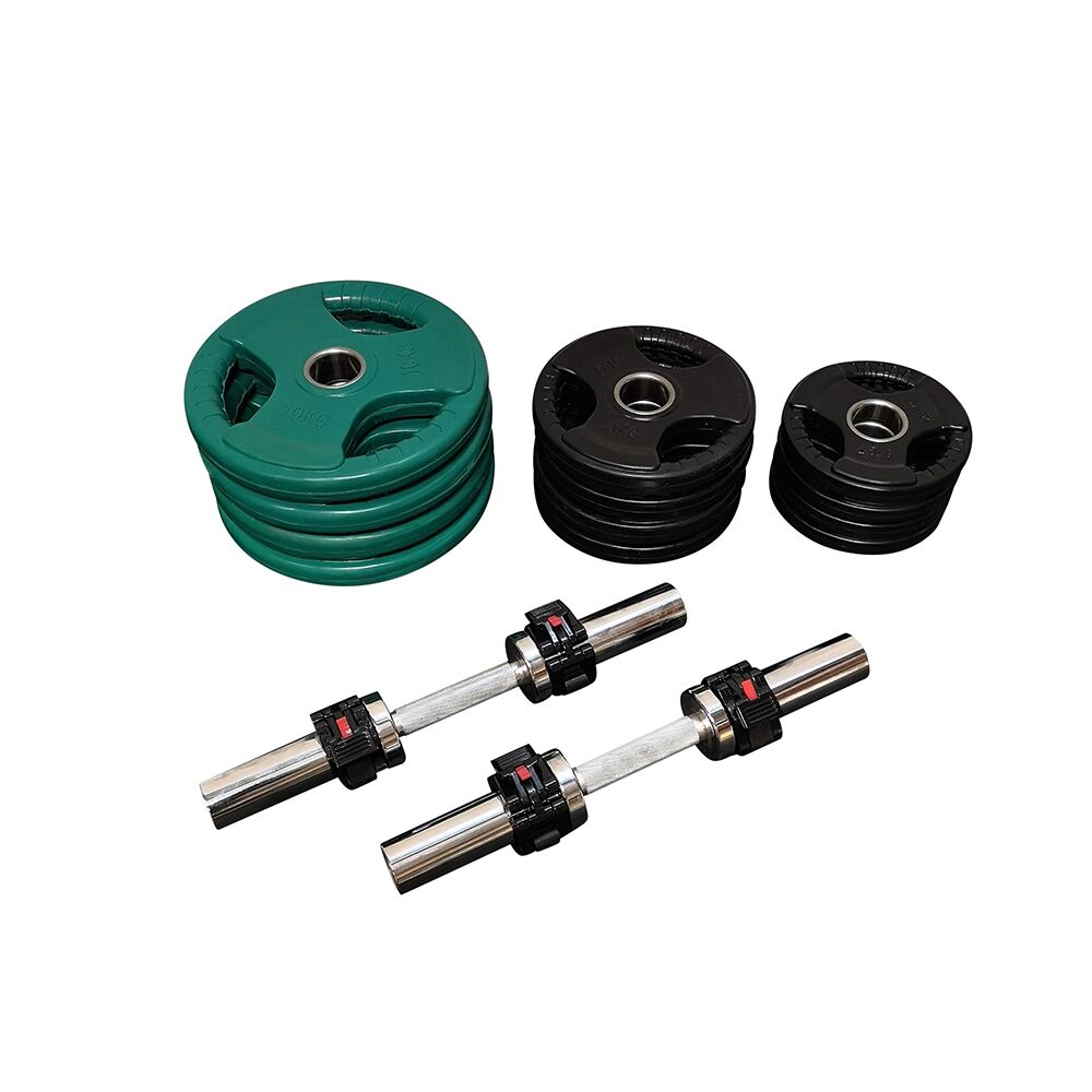 Meget fleksibelt, plassbesparende og økonomisk hantelsett. Alt er i 50mm olympisk diameter.