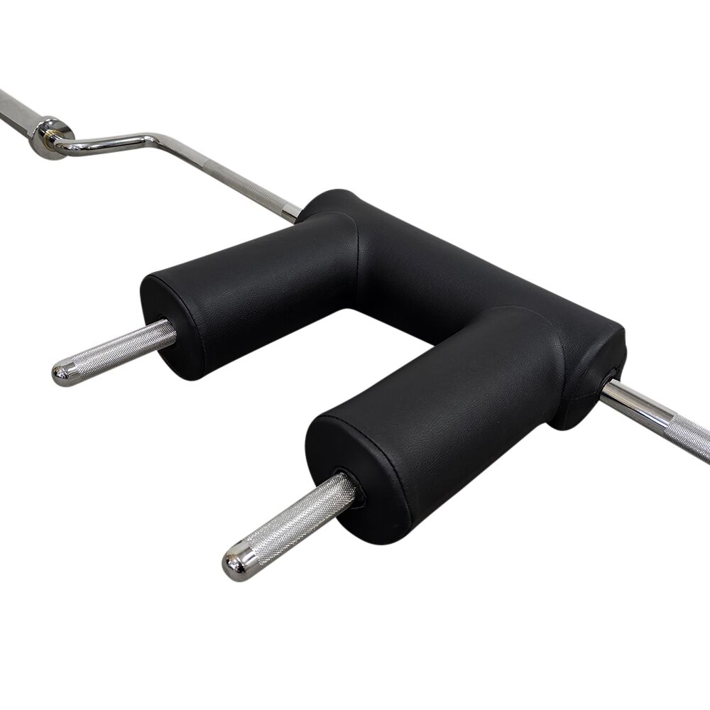 En safety squat bar er et fint alternativ til vanlig knebøy med rett stang da denne vil legge mindre krav til mobilitet hos brukeren. Den vil fordele vekten litt mer fremover slik at en ikke så lett tipper bakover. Både ankler og skuldre vil dermed stilles under mer nøytrale forhold og selve knebøy øvelsen blir en blanding av frontbøy og vanlig knebøy. For mange vil knebøy med en slik stang føles tryggere og mer «riktig» kontra med en vanlig rett stang. Nakke og skulderputene på vår safety squat bar er meget solide og slitesterke. Det medfølger et par jaw locks. Denne stangen brukes med olympiske vektskiver (50mm) som kjøpes separat.
