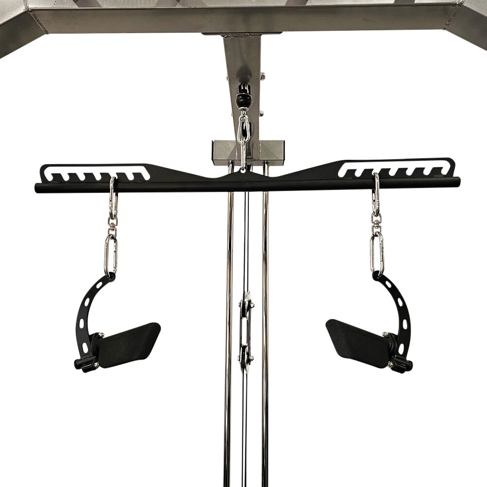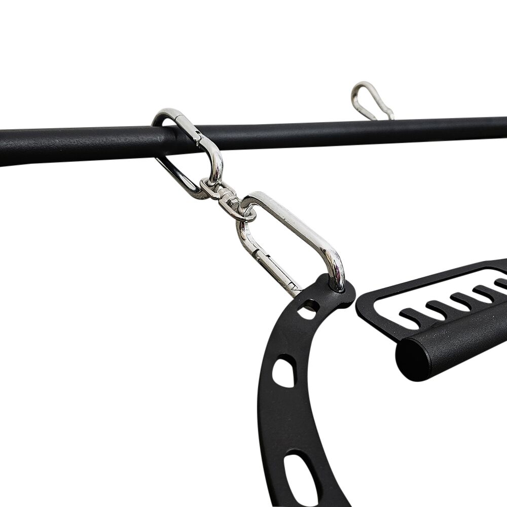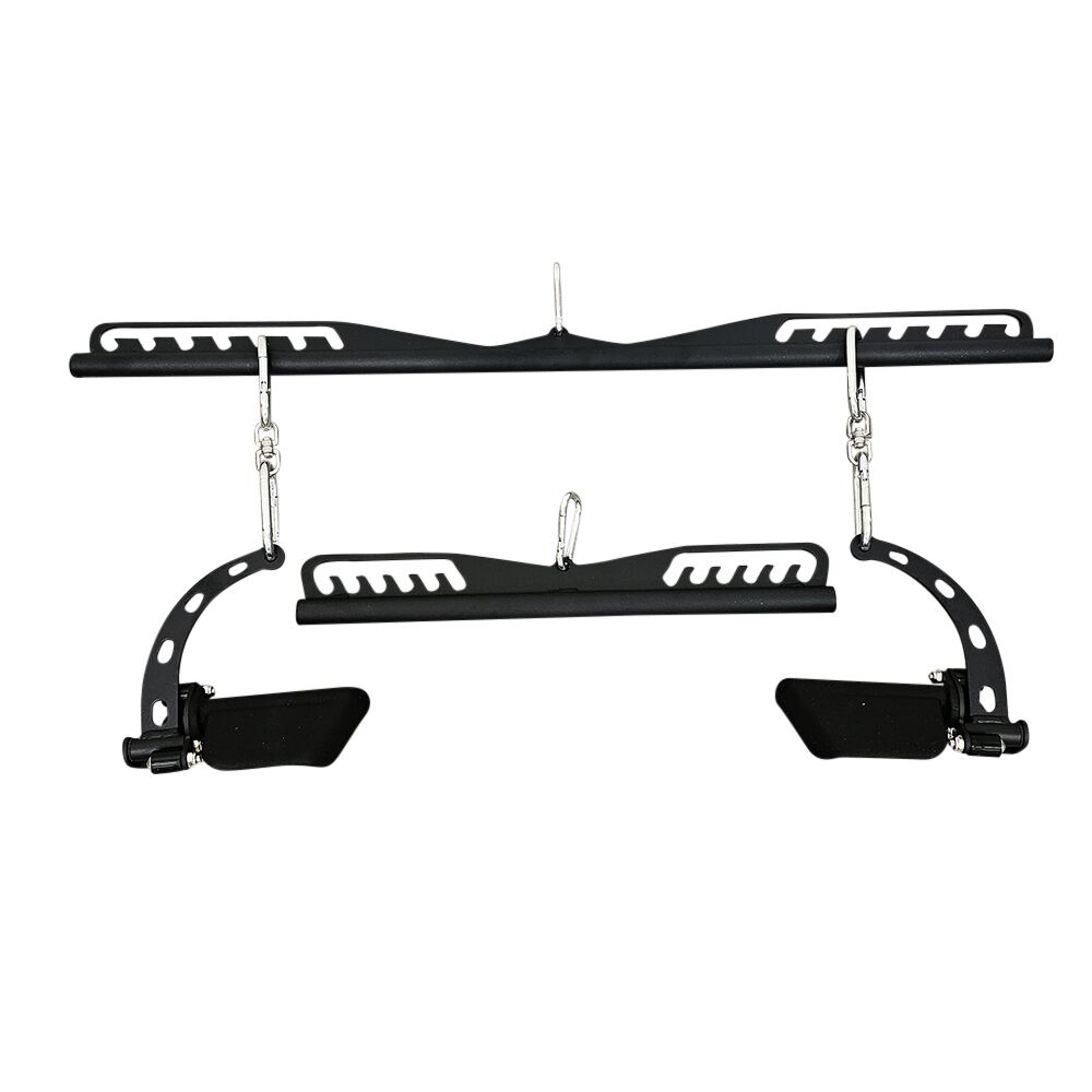Vår spreader grips pakke inneholder to stk spreader bars + to stk roterende håndtak. Med disse kan man raskt og enkelt variere grepsbredden fra 90cm og helt ned til 20cm med 5cm intervaller hele veien ned. Håndtakenes karabinkroker har et fritt roterende mellomledd som gjør at en kan rotere håndleddene underveis i øvelsen for å treffe akkurat der en vil.
